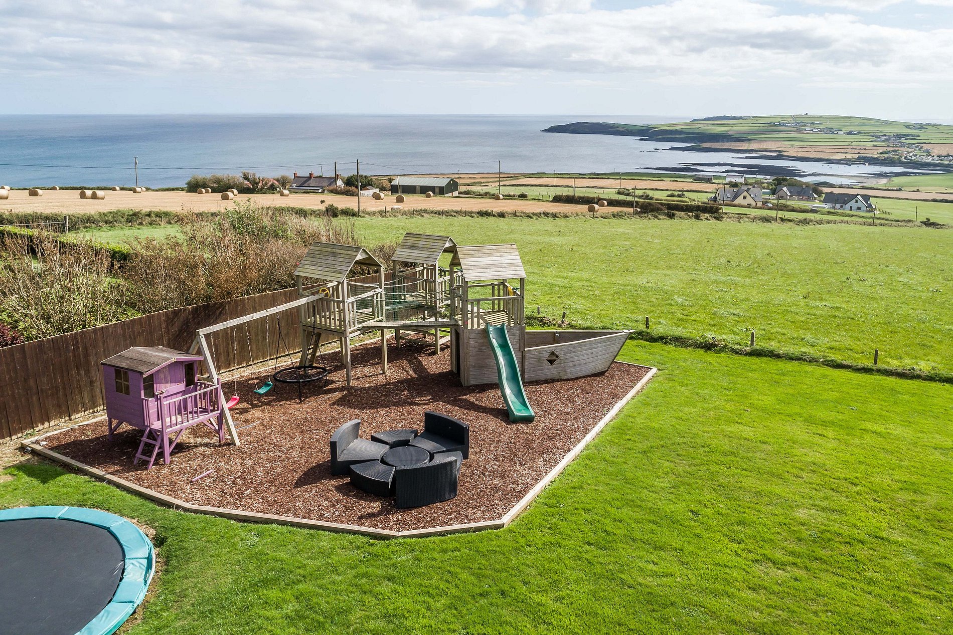 The house features bright open living areas, large windows that bring the outdoors in, and a generous patio ideal for dining together or enjoying the fresh coastal air. The extensive grounds include beautifully maintained lawns, a charming outdoor gazebo for relaxing evenings, and plenty of space for children to play. Just a short drive from the colourful harbour town of Kinsale, guests can enjoy award-winning restaurants, scenic coastal walks, beaches, and historic attractions before returning to unwind in comfort and privacy.